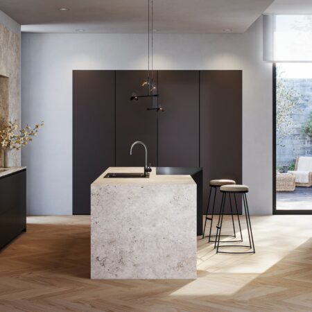 Inspirada en la naturaleza, Ticino apuesta por formas limpias y materiales cálidos que conectan con el entorno. El perfil gola en roble y la puerta de paso a lavandería, completamente integrada, crean una continuidad visual elegante.